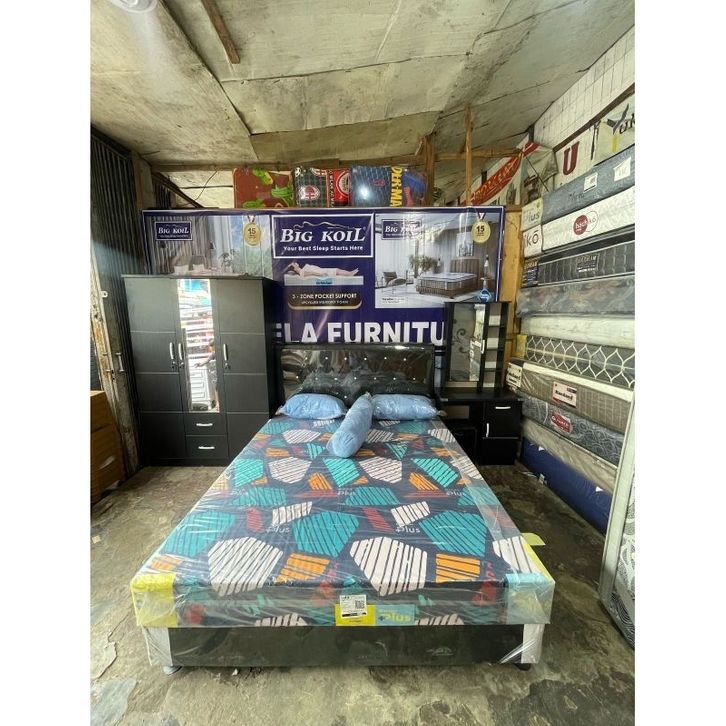SET KAMAR LEMARI PINTU 3+MEJA RIAS+DIVAN STANDAR KASUR INOAC PLUS busa biru - 10 tahun bonus bantal guling