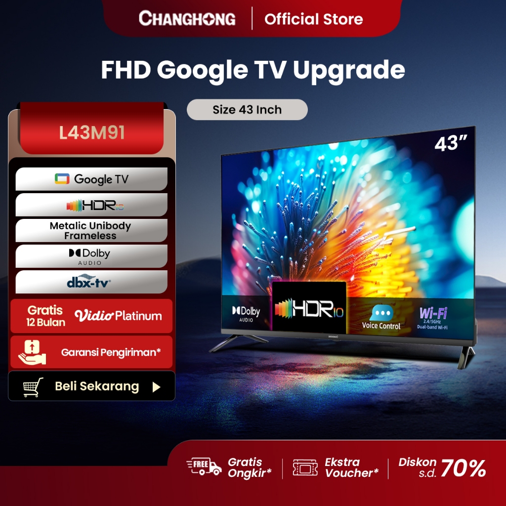 [Mall] TV Changhong Google 43 inch FHD Dolby Audio Google Play Netflix Bluetooth USB Google Assistant Smart TV Digital