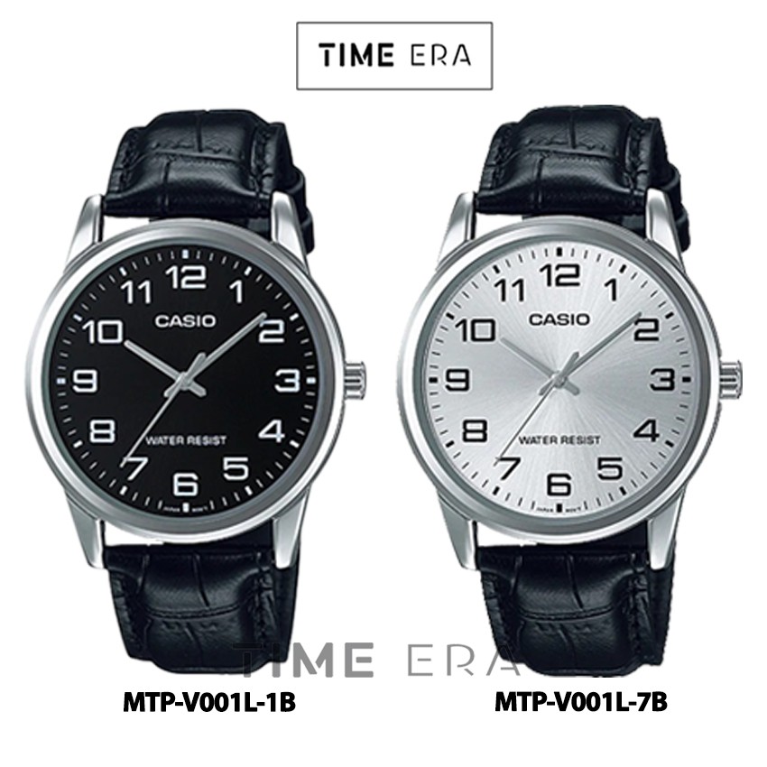 Casio General MTP-V001 Series / MTP-V001L-1B 7B Jam Tangan Pria Kulit Silver Hitam Putih