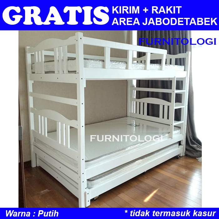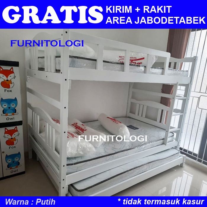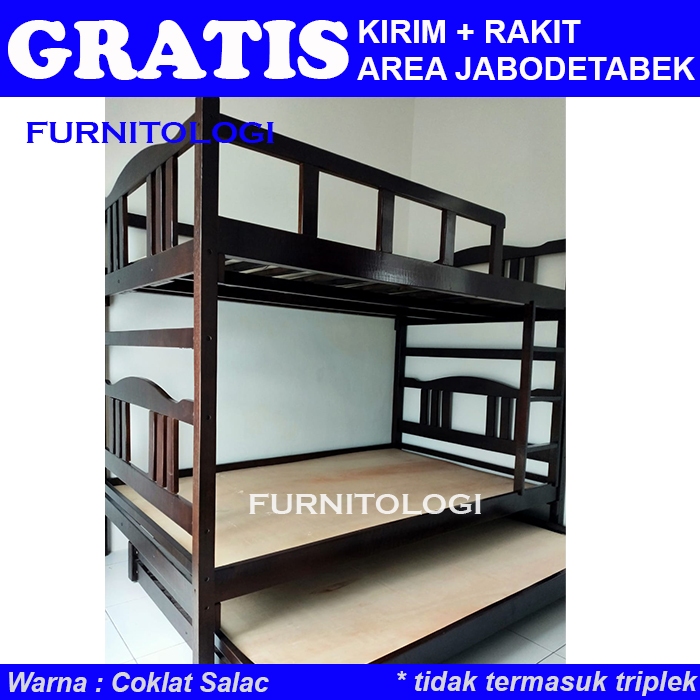 RANJANG SUSUN 3 TINGKAT UK 120X200 DIPAN TINGKAT KAYU TEMPAT TIDUR TINGKAT SORONG BUNK BED