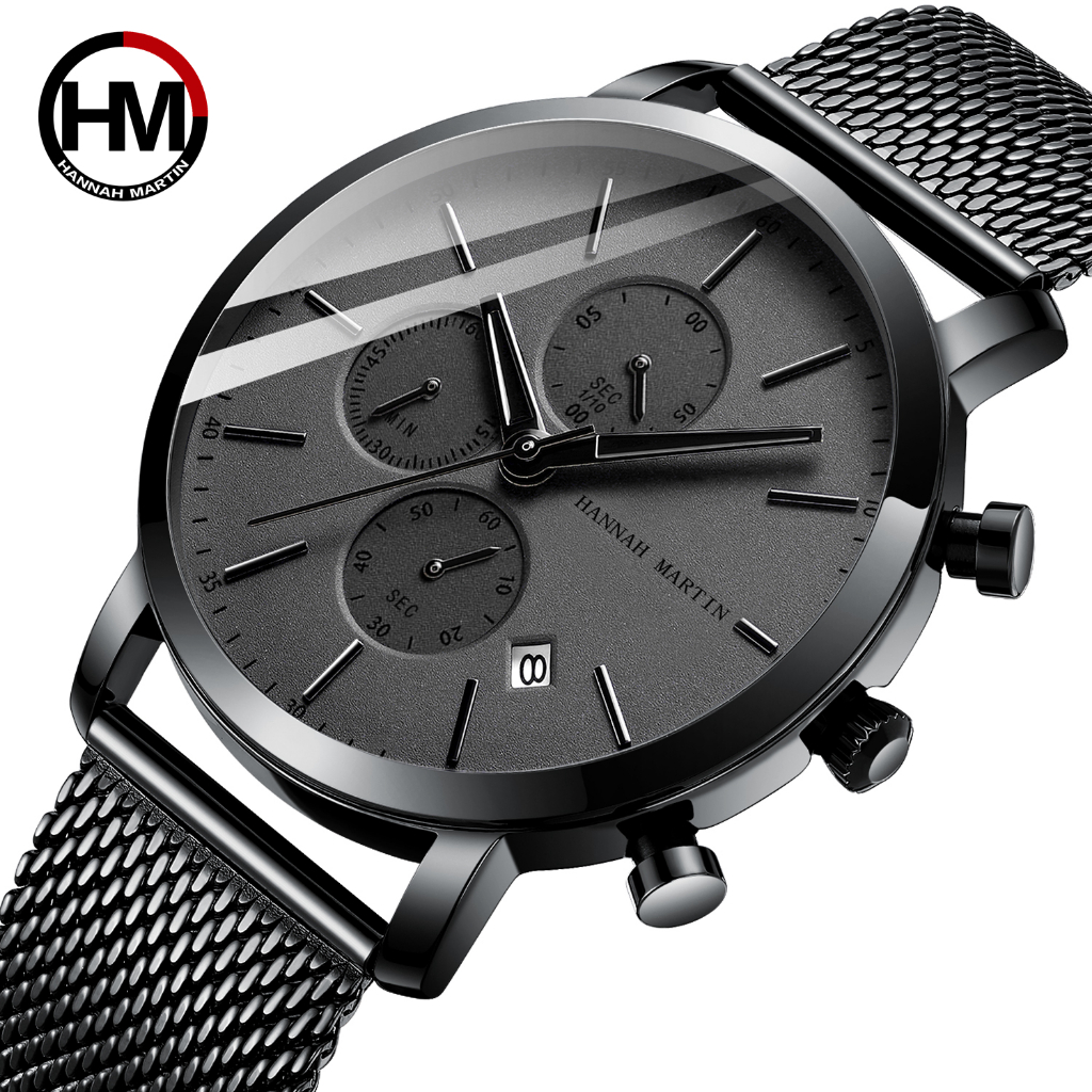 HANNAH MARTIN Jam Tangan Pria 100% Original Kronograf Quartz Tahan air COWOK Analog Laki 109W