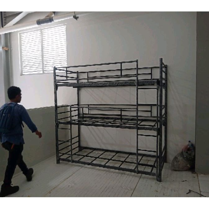 RANJANG SUSUN 3 TINGKAT RANJANG BESI 3SUSUN TEMPAT TIDUR TINGKAT BESI SINGLE POWDER COATING TEMPAT TIDUR SUSUN 3