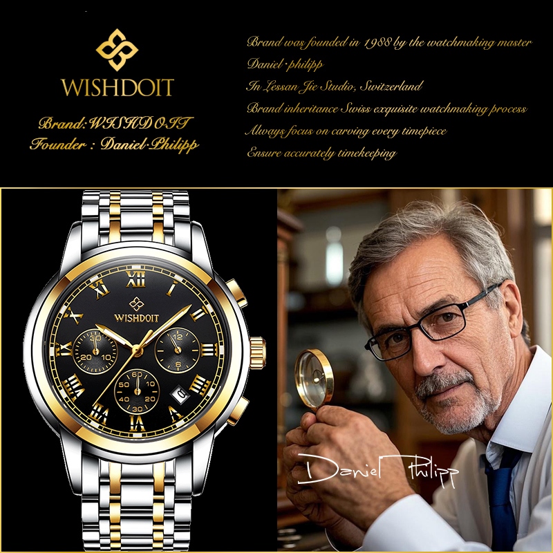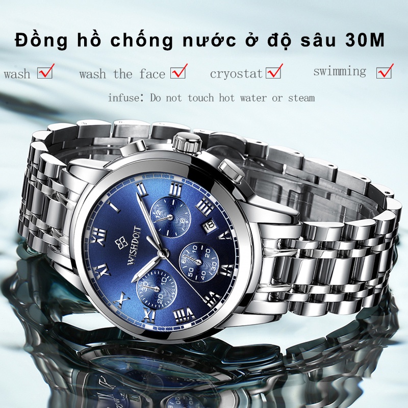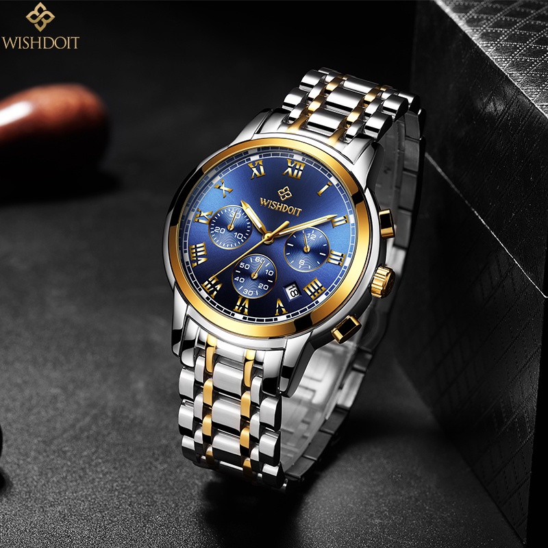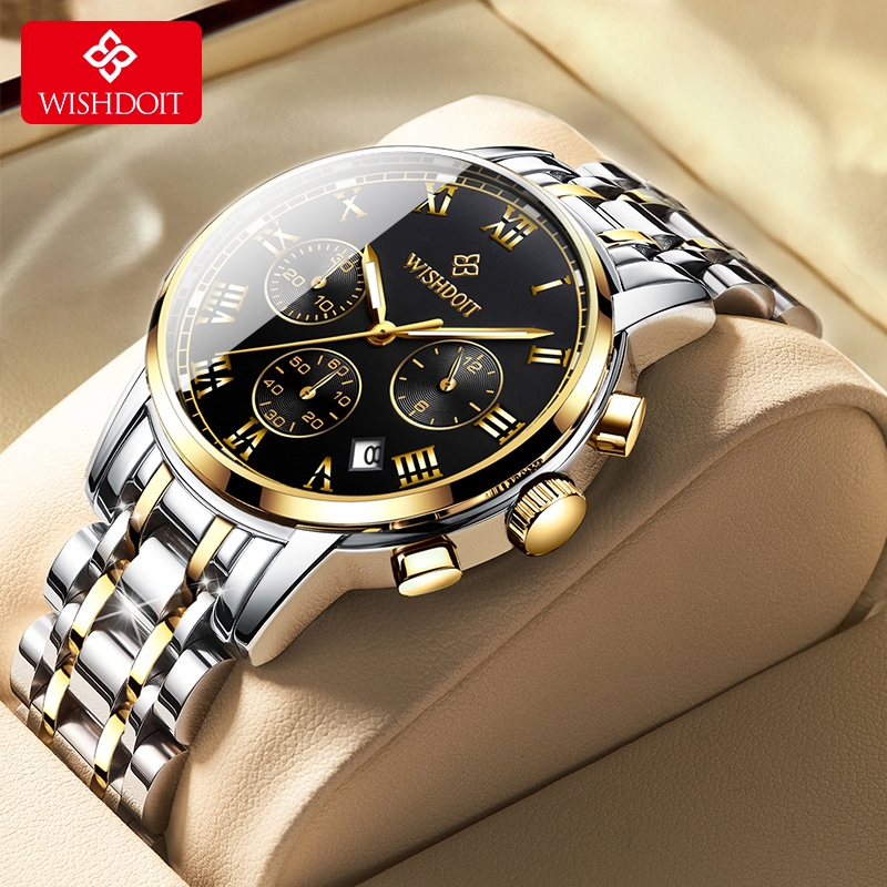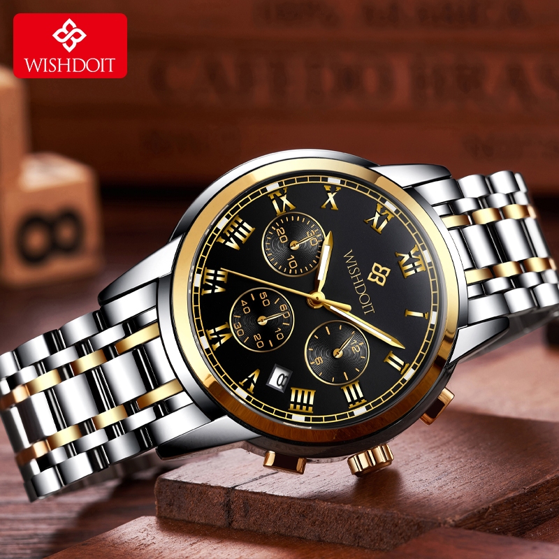 WISHDOIT Jam Tangan Pasangan Asli Pria dan Wanita Jam Tangan Anti Air Baja Tahan Karat Kronograf Kalender Analog Bercaha