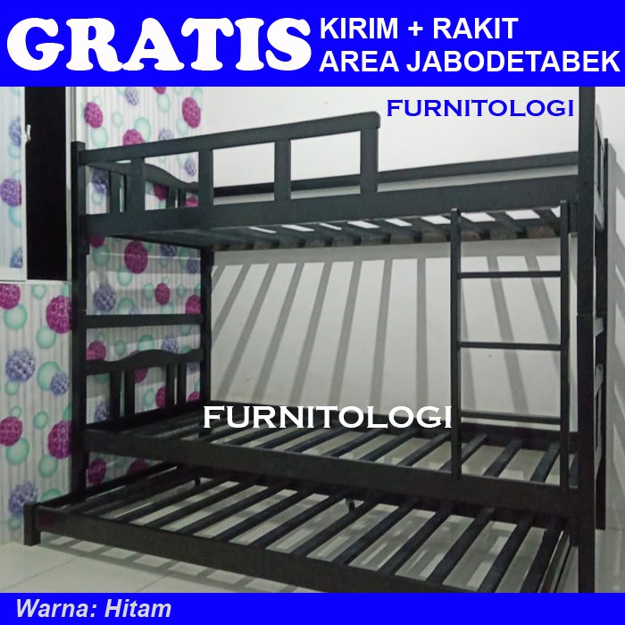 RANJANG 3 SUSUN RANJANG TINGKAT SORONG 90X200 TEMPAT TIDUR 3 TINGKAT RANJANG SUSUN KAYU 90X200