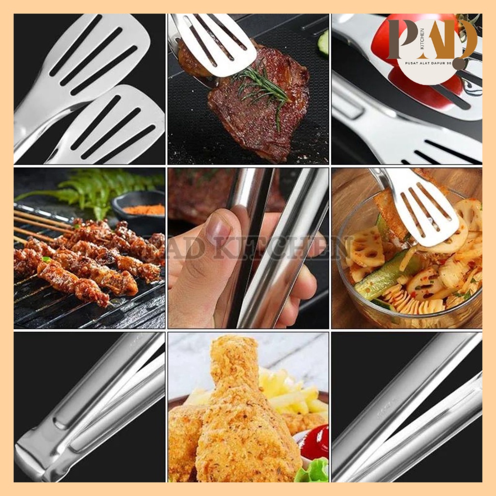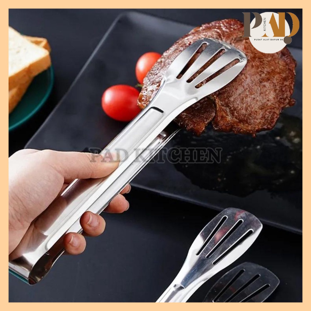 JEPIT 3 GARIS PENJEPIT MAKANAN STAINLESS TAHAN KARAT PERALATAN DAPUR ALAT MASAK PRASMANAN PENJEPIT ROTI ANTIPANAS