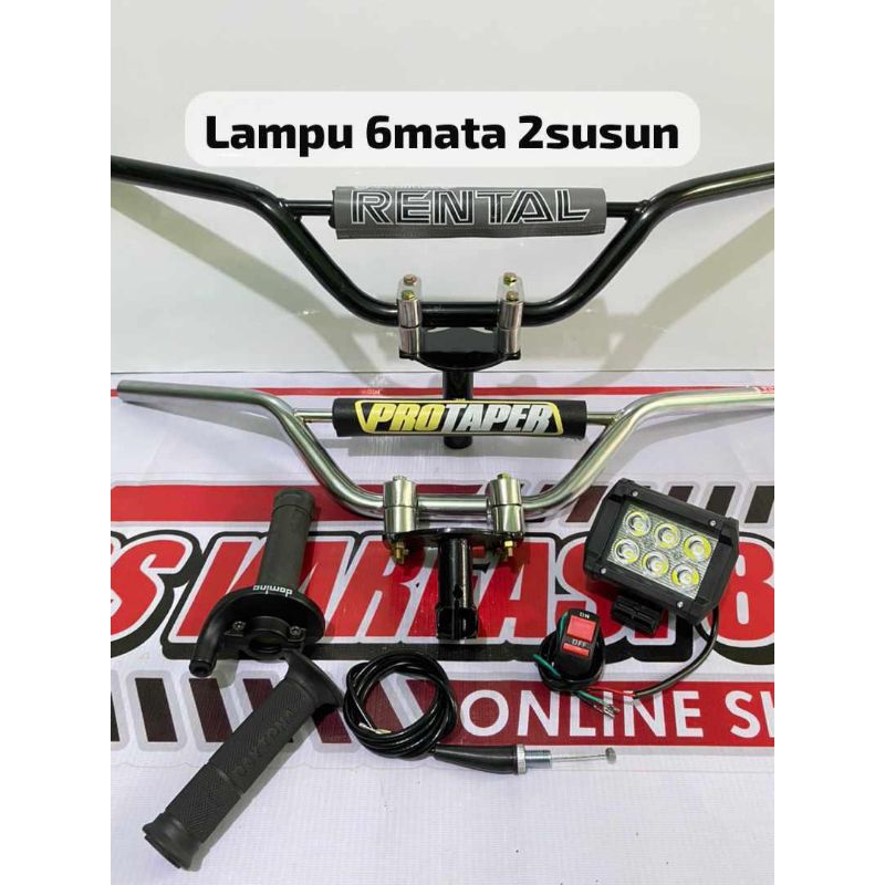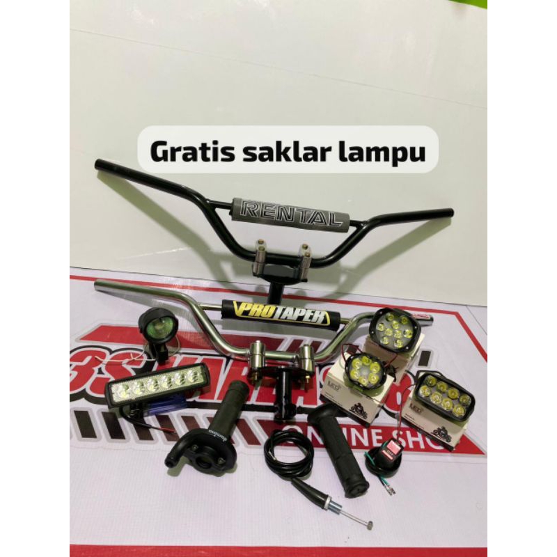 GERATIS ONGKIR STANG TRAIL paketan stang trail+adaptor stang+gas spontan polos besi import+lampu tembak LED=√GRATIS SAKL