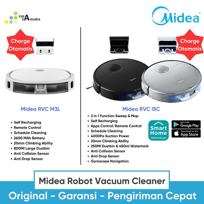 MIDEA SMART ROBOT VACUUM CLEANER AUTO RECHARGE | AUTO NAVIGATION | ANTI COLLISION | ANTI FALL ROBOT VACUM BISA NYAPU SEDOT DAN PEL M3L I5C M7 - MIDEA M3L