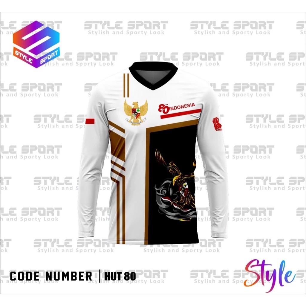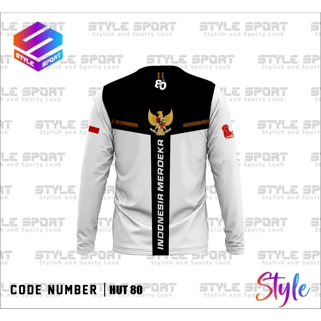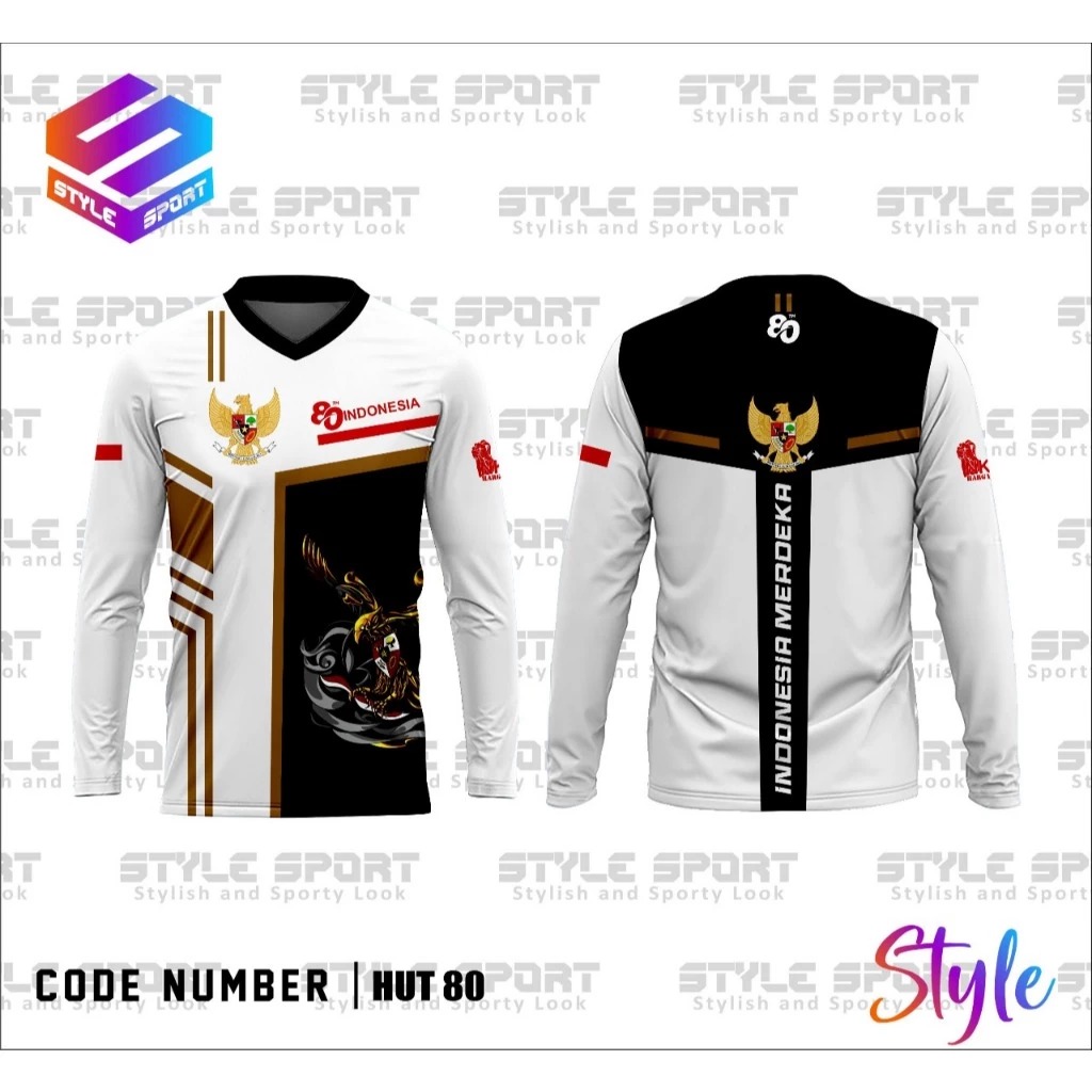 kaos - Jersey Agustusan Lengan Panjang Warna Putih Hitam Unisex/Kaos Dirgahayu Kemerdekaan Indoneisa 80Th Full Printing