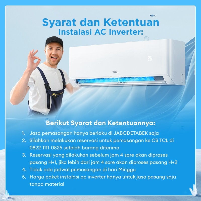 TCL AC Inverter 1PK - Tersedia Pemasangan - AI Tech Hemat Listrik 70% - Anti Bising - Cepat Dingin - Tu