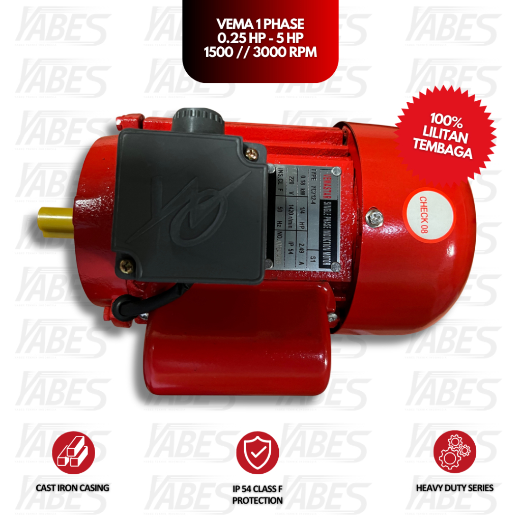 VEMA Dinamo Elektro Motor 1 Phase HEAVY DUTY - Dual Capasitor Body Cast Iron 100% TEMBAGA B3 Foot Mounted Elmot 1 Phasa