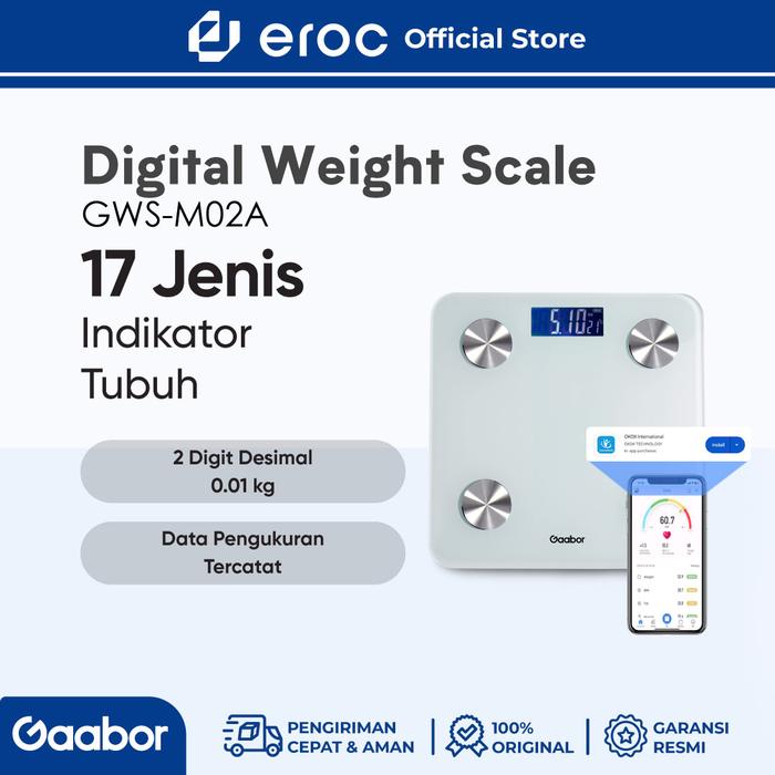 Gaabor Timbangan Putih Badan Digital Pengukur Kadar Lemak BMI Otot Smart Body Fat Scale USB Charging Kaca Anti Pecah / G
