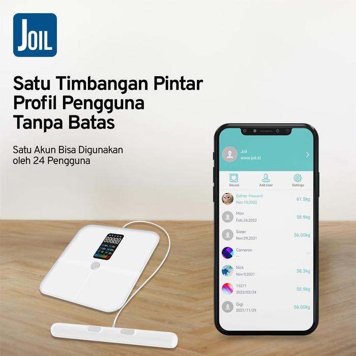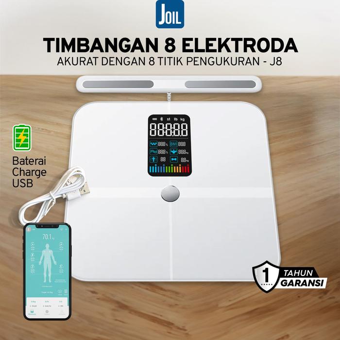 Joil Timbangan Badan Digital Smart Body Scale Chargeable BMI dan Body Fat Monitor Komprehensif Lengkap 8 Sensor Presisi