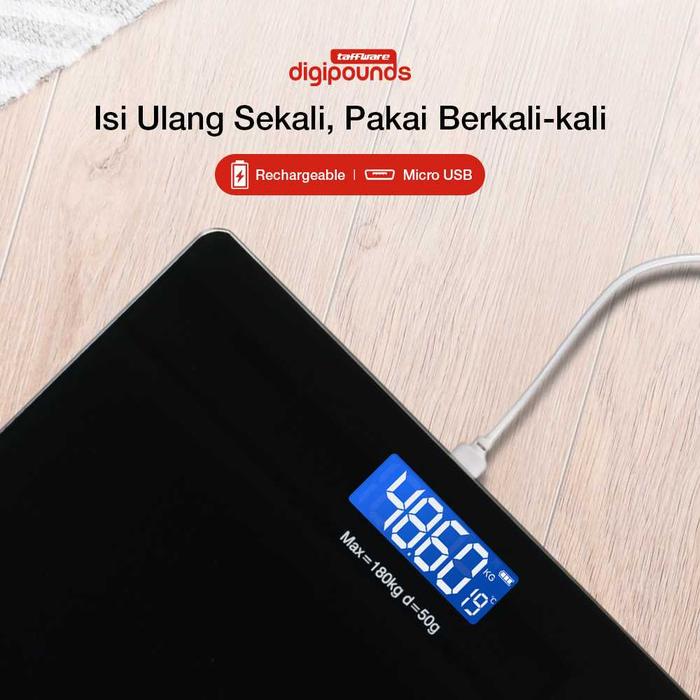 [ USEA x Taffware ] Digipounds Timbangan Pengukur Berat Badan Digital Scale Rechargeable 180kg - SC-12U - Hitam