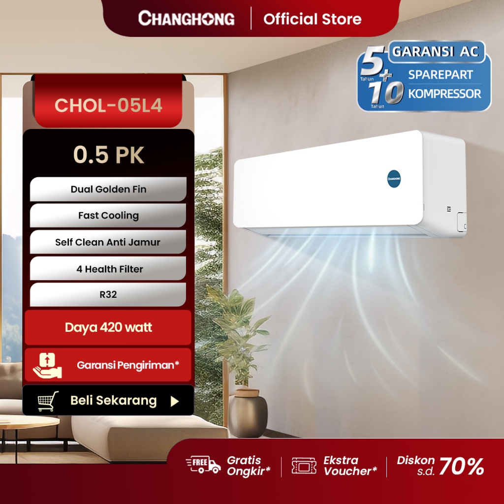 CHANGHONG AC 1/2 PK STANDARD CHOL-05L4 [INDOOR + OUTDOOR UNIT ONLY] [FAST COOLING] [SLEEP MODE] [ECO MO