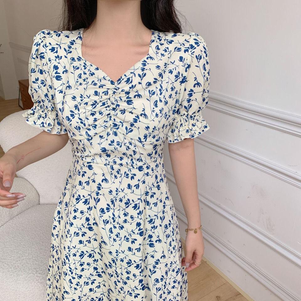 ZLORE - #DF01 Floral Midi Dress Import / Broken White Flower Slit Dress (S-XXL)