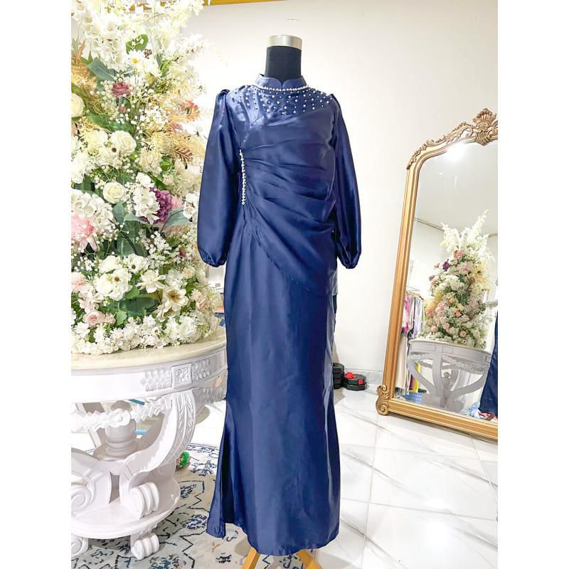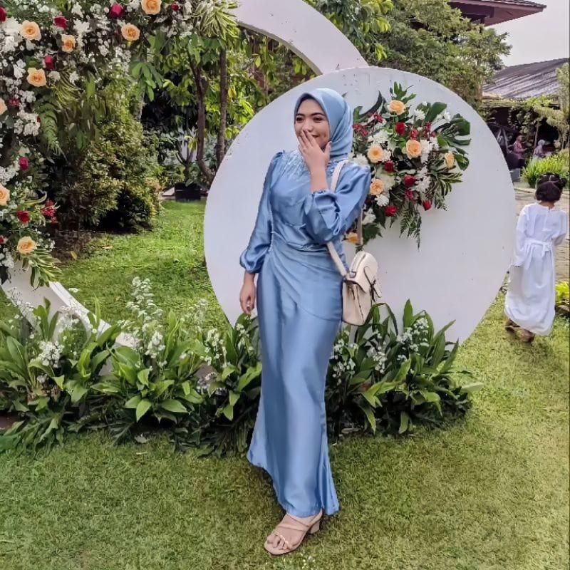 Vina Dress Spesial Burgundy Dress Maxi Wanita Kondangan Slim Body Fit Viral Terbaru