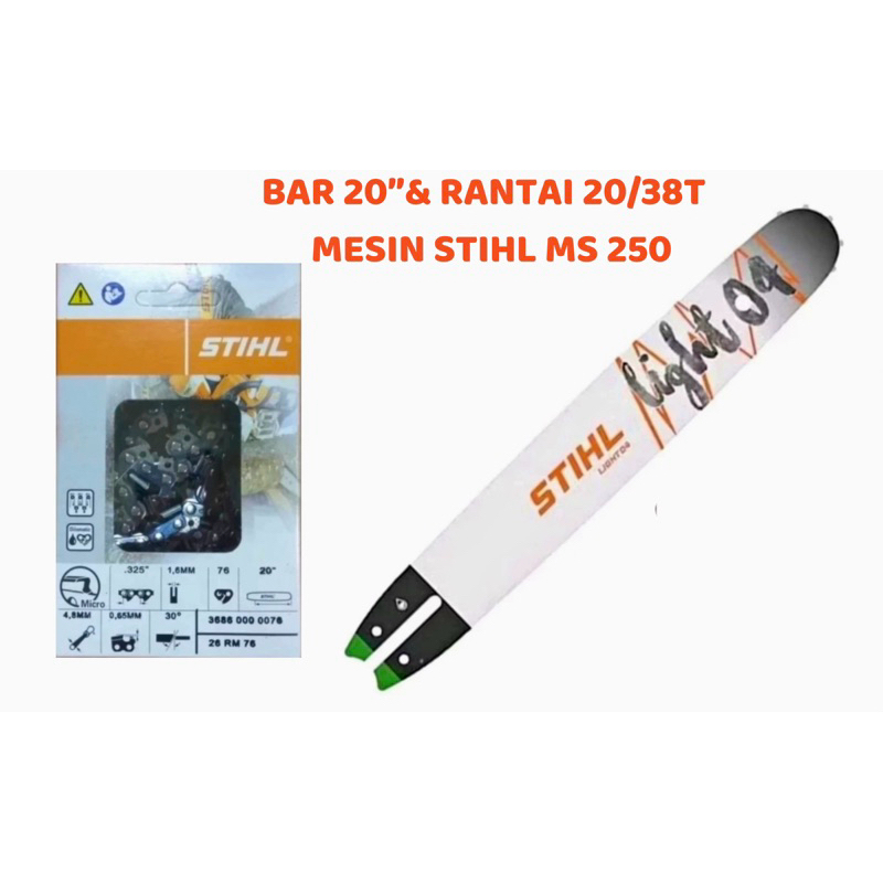 1 SET RANTAI 20/38T DAN BAR 20” STIHL MS 250 RANTAI 20 INCH DAN BAR 20 INCH SENSO MS 250 STIHL