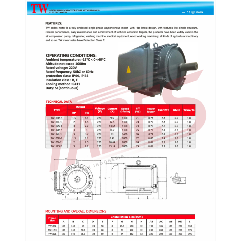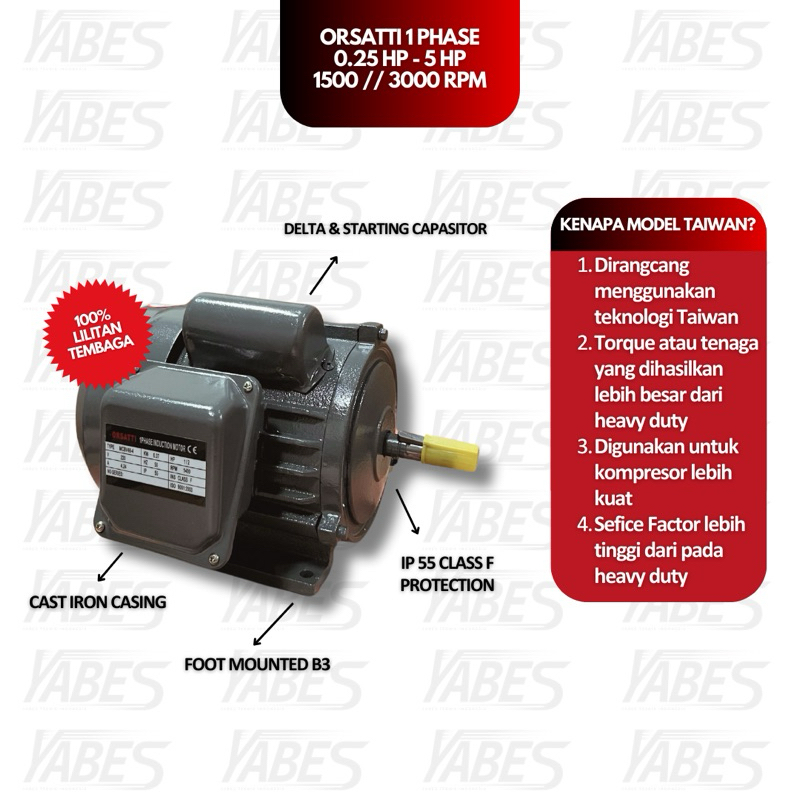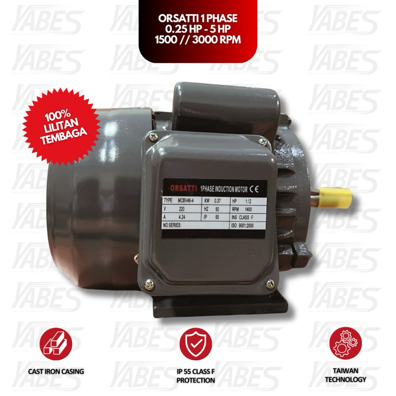 ORSATTI Dinamo Elektro Motor 1 Phase Model Taiwan - Dual Capasitor Body Cast Iron 100% TEMBAGA B3 Foot Mounted Elmot 1 P