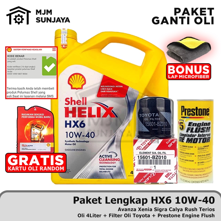 [GRATIS FILTER OLI] PAKET LENGKAP Ganti Oli Mesin Shell Helix HX6 SAE 10W-40 4 Liter Engine Flush TOYOTA Avanza Xenia Si