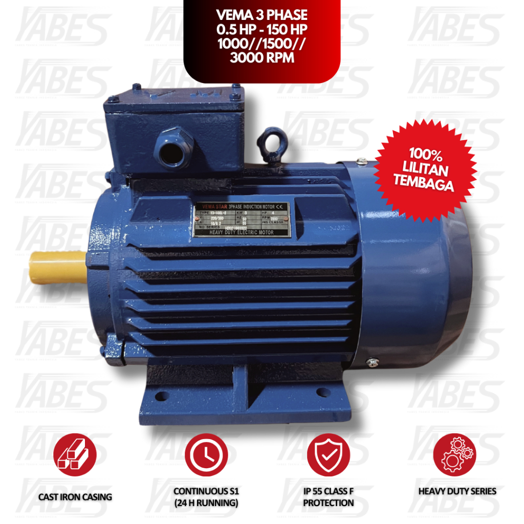 VEMA Dinamo 3 Phase 380v HEAVY DUTY 0.5 HP - 7.5 HP // 370 - 5500 Watt 100% Lilitan Tembaga 1000RPM // 1500RPM // 3000 R
