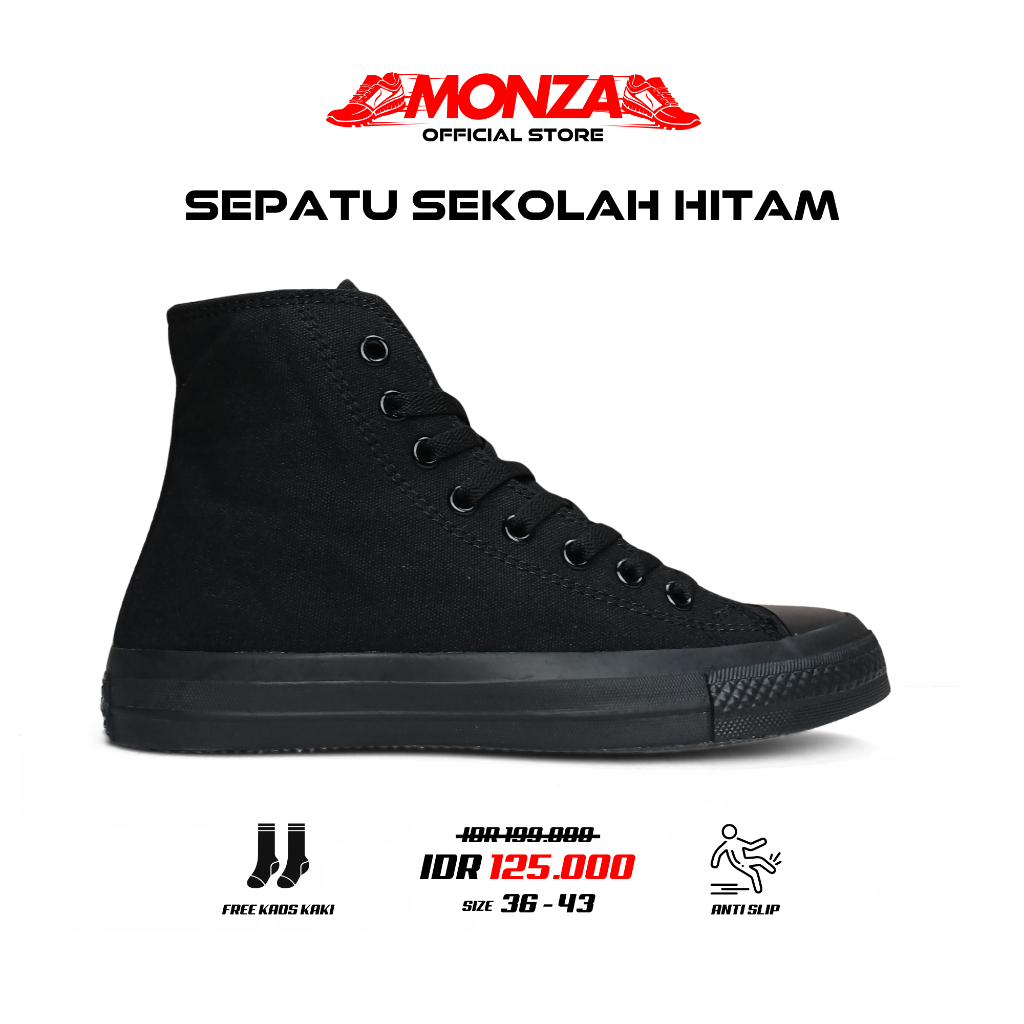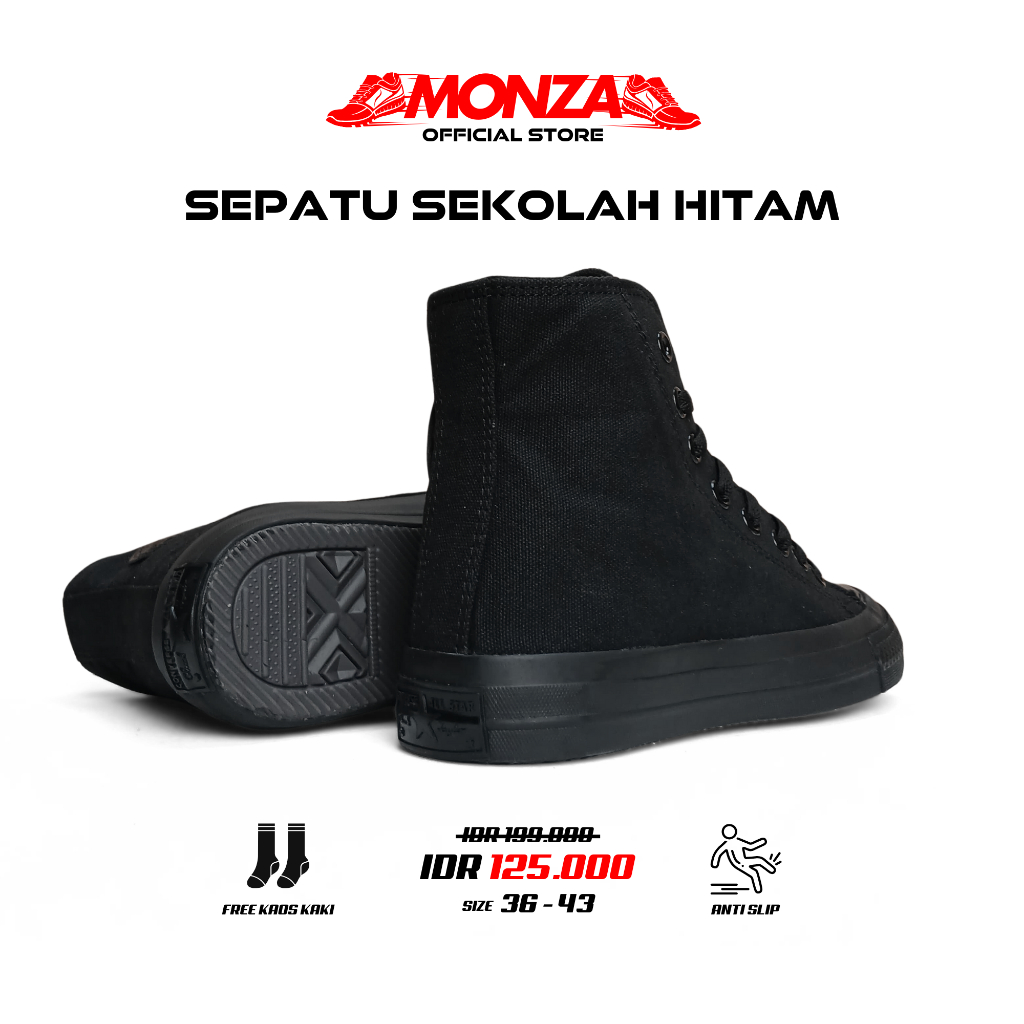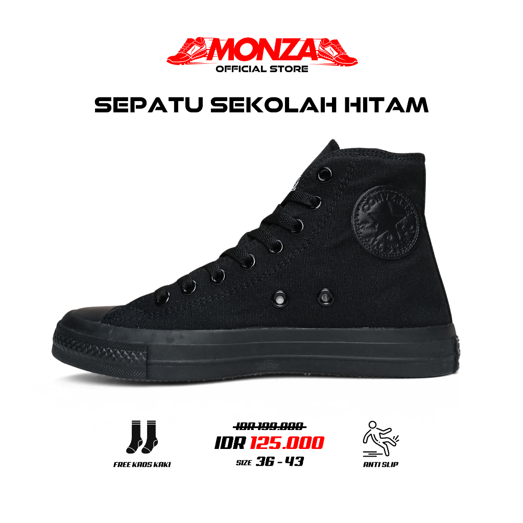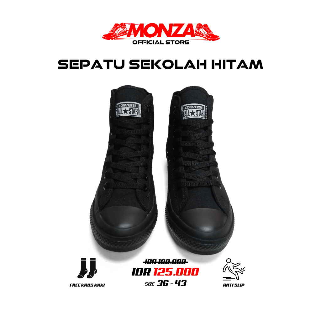 MONZA OFFICIAL - SEPATU SEKOLAH ALL STAR FULL BLACK CONVERSE HIGH SNEAKERS CASUAL PRIA DAN WANITA CONVERSE ALL STAR