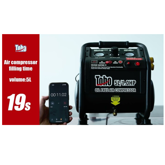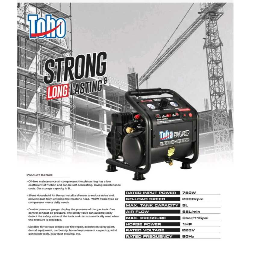 TOHO KOMPRESOR OILLESS 1HP 5 LITER COMPACT SILENT AIR COMPRESSOR