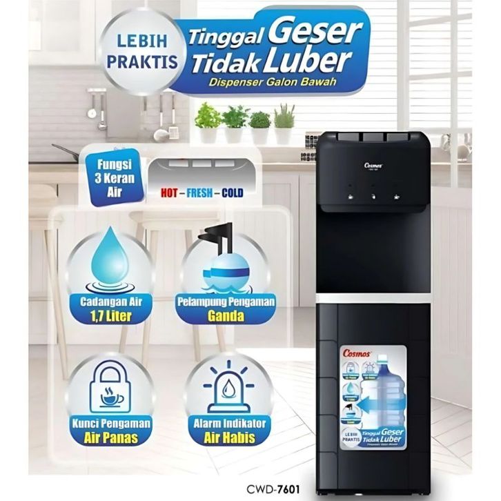 DISPENSER COSMOS CWD-7601 GALON BAWAH 3IN1 3 KRAN NORMAL PANAS DINGIN