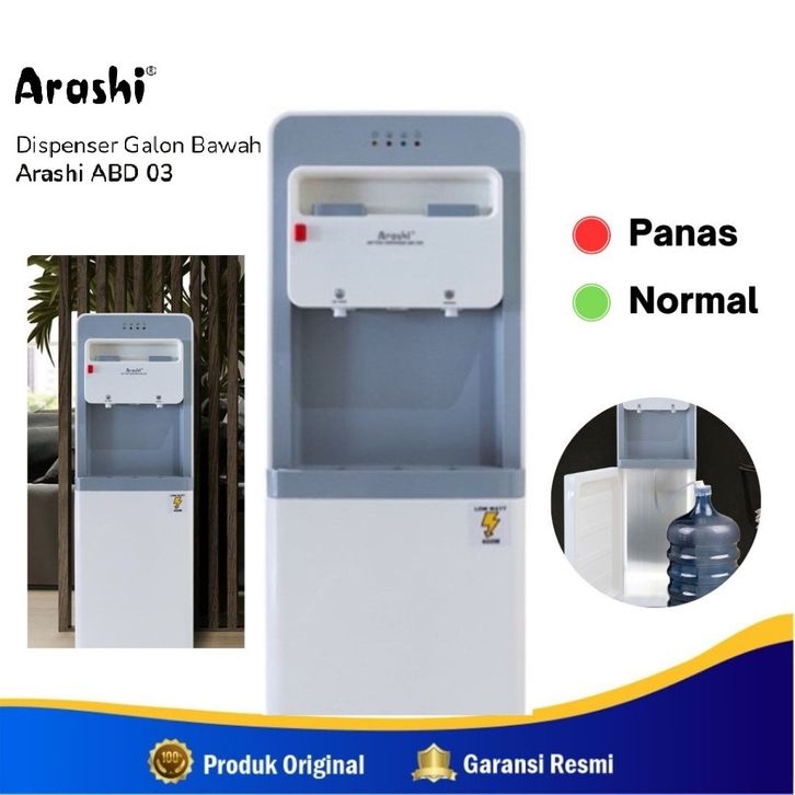 Dispenser Arashi ABD 03C GALON BAWAH fungsi Panas Normal Dispenser Galon Bawah Arashi Dispenser