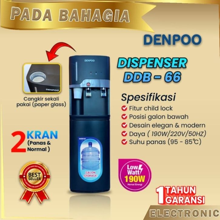Dispenser Galon Bawah Low Watt DENPOO DDB 66 Pipa Stainless Steel