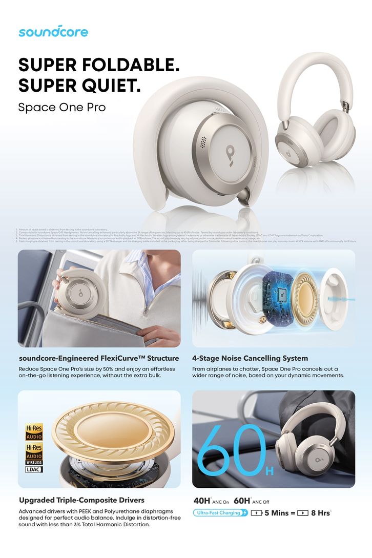 HEADPHONE SOUNDCORE SPACE ONE PRO NOISE CANCELLING HEADPHONES ORIGINAL ANKER OFFICIAL STORE