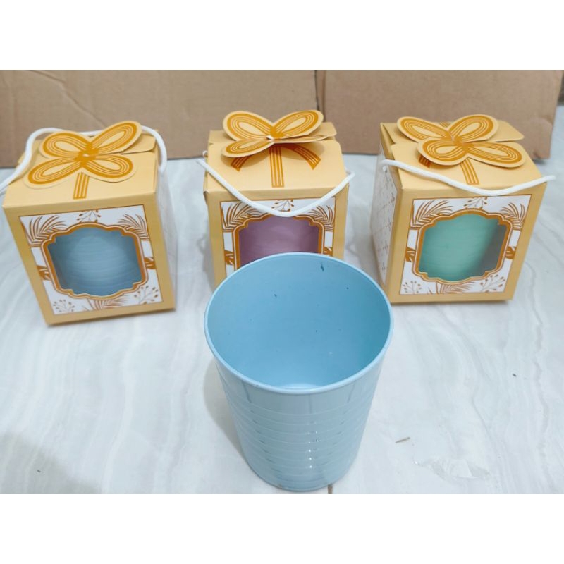 ISI 50 PCS souvenir pernikahan gelas warna kan box tali