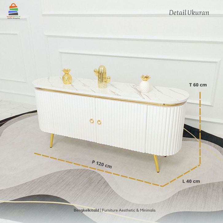 Meja Nadira TV Minimalis Modern Rak TV Lemari TV Bufet TV Minimalis Buffet Oval Credenza Aesthetic