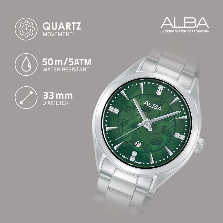[Star] Jam Tangan Alba Original Jam Tangan Alba Wanita Jam Tangan Wanita AH7EK3 AH7EK3X1 Quartz Green Mother of Pearl