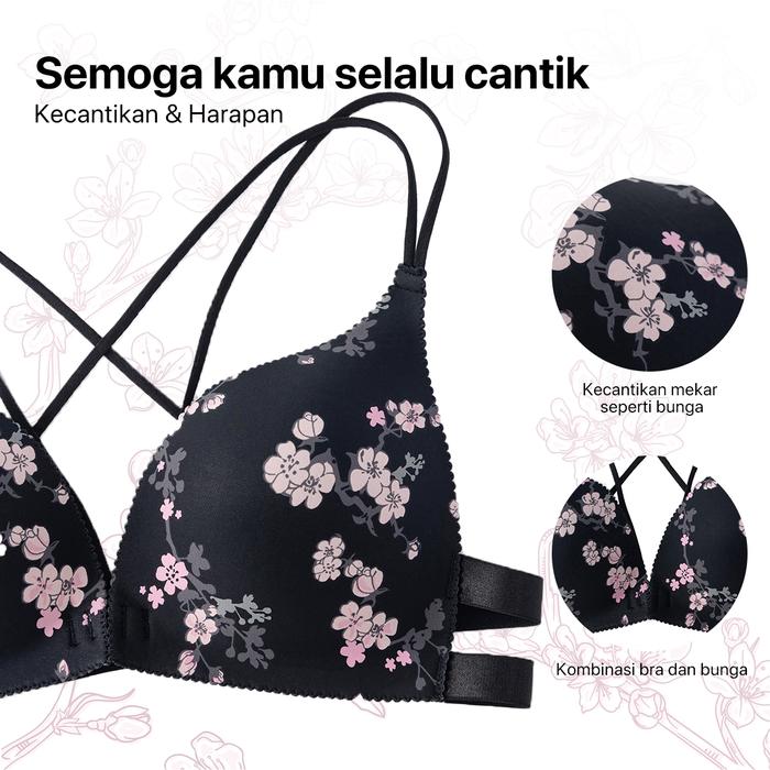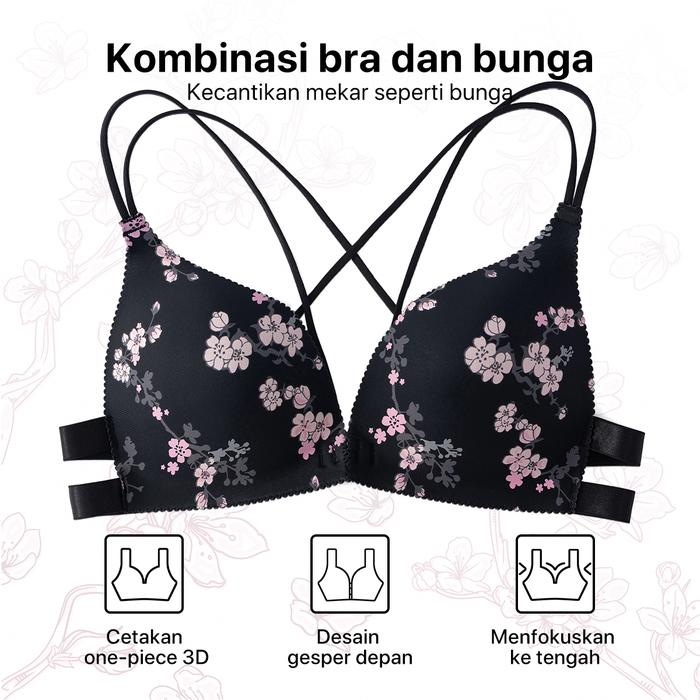 GRENEY-G.Flower-Sakura-Bra One-piece Gesper Depan 3/4 Coverage Wanita Bh Busa Motif Seamless Tipis