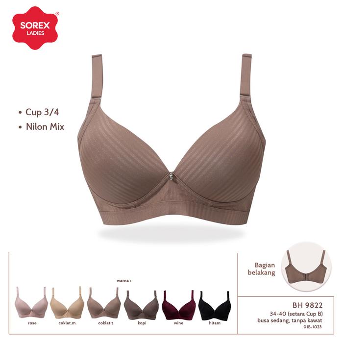 Sorex Bra Tanpa Kawat Busa Sedang Kait 3 Cup B 3/4 Bra Harian BH 9822