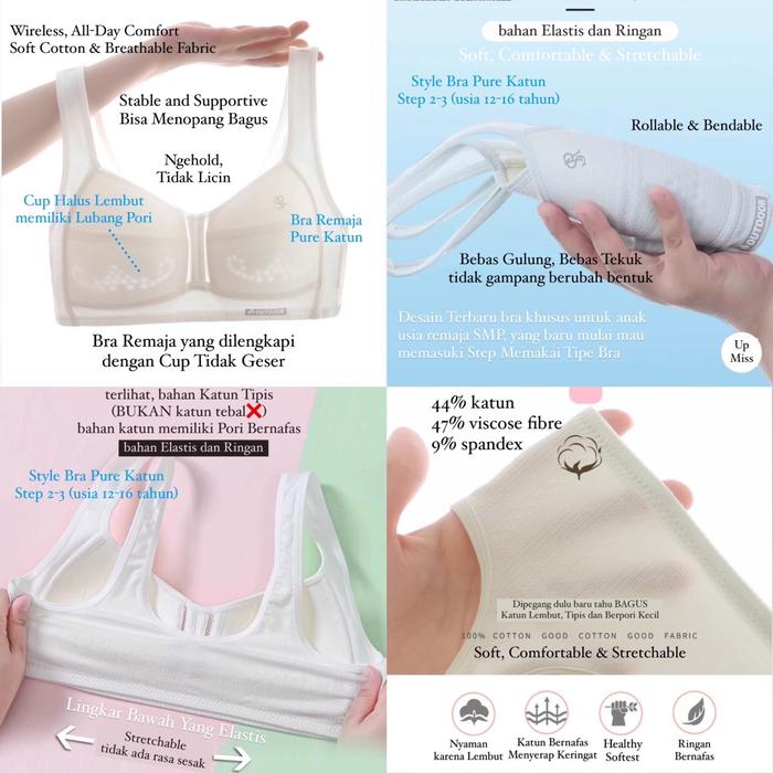 UpMiss - Bra Remaja Pure Katun Step 2-3 (12-16 tahun) Miniset Anak Remaja Teens Seamless Bra Tanpa