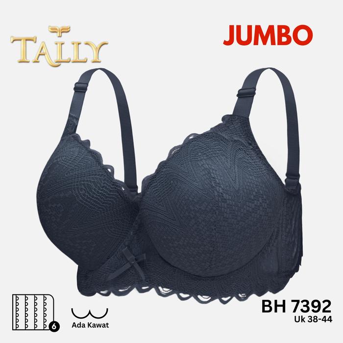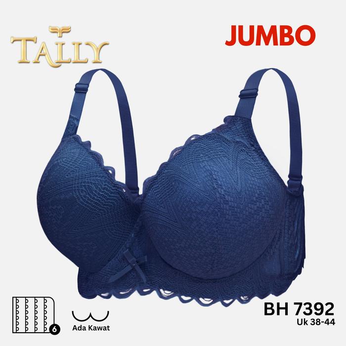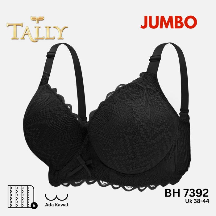 TALLY BH 7392 Bra Wanita JUMBO Ada Kawat Busa Tipis Bahan Renda Katun Cup D Kait 6 Bra Big Size