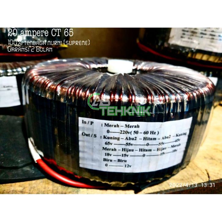 Trafo Toroid Donat 20A CT 65V-55V Tembaga Murni BY ORIGINAL 100