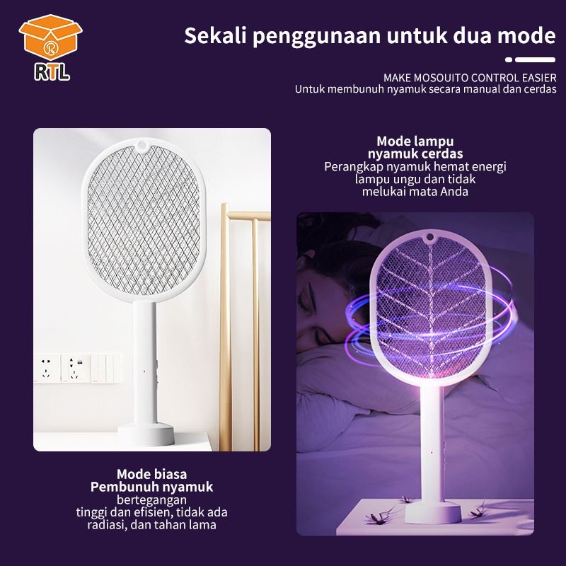 RTL Raket Nyamuk Elektrik Cas Ori Tahan Lama Murah Awet Charger Usb 2 in1 Raket Nyamuk Standing