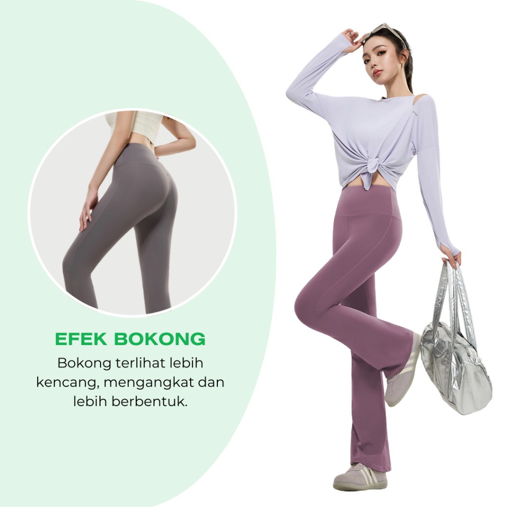 KKTOP Celana Olahraga Yoga Wanita Legging Sport Celana Cutbray Olahraga High Waist Pants Gym (C001)