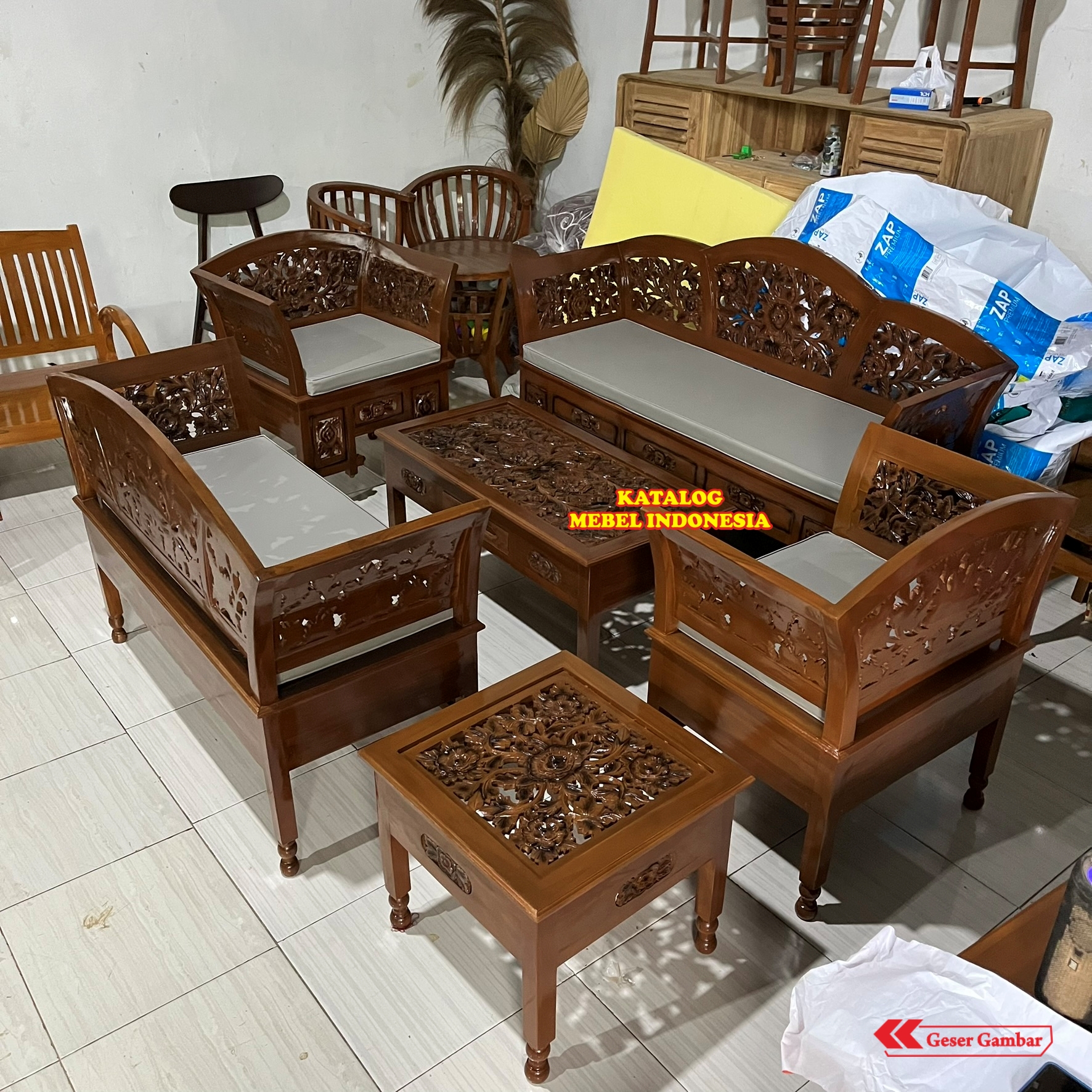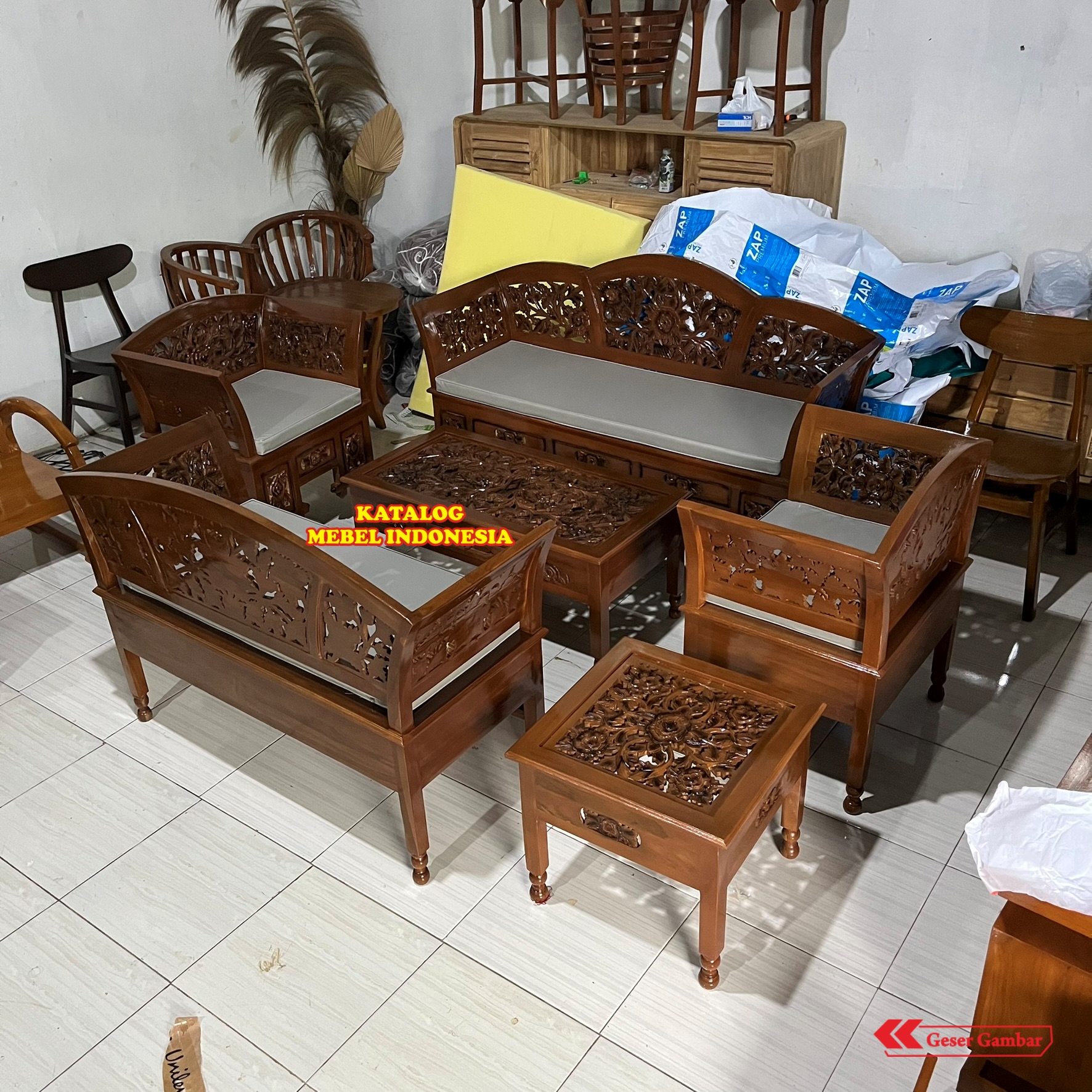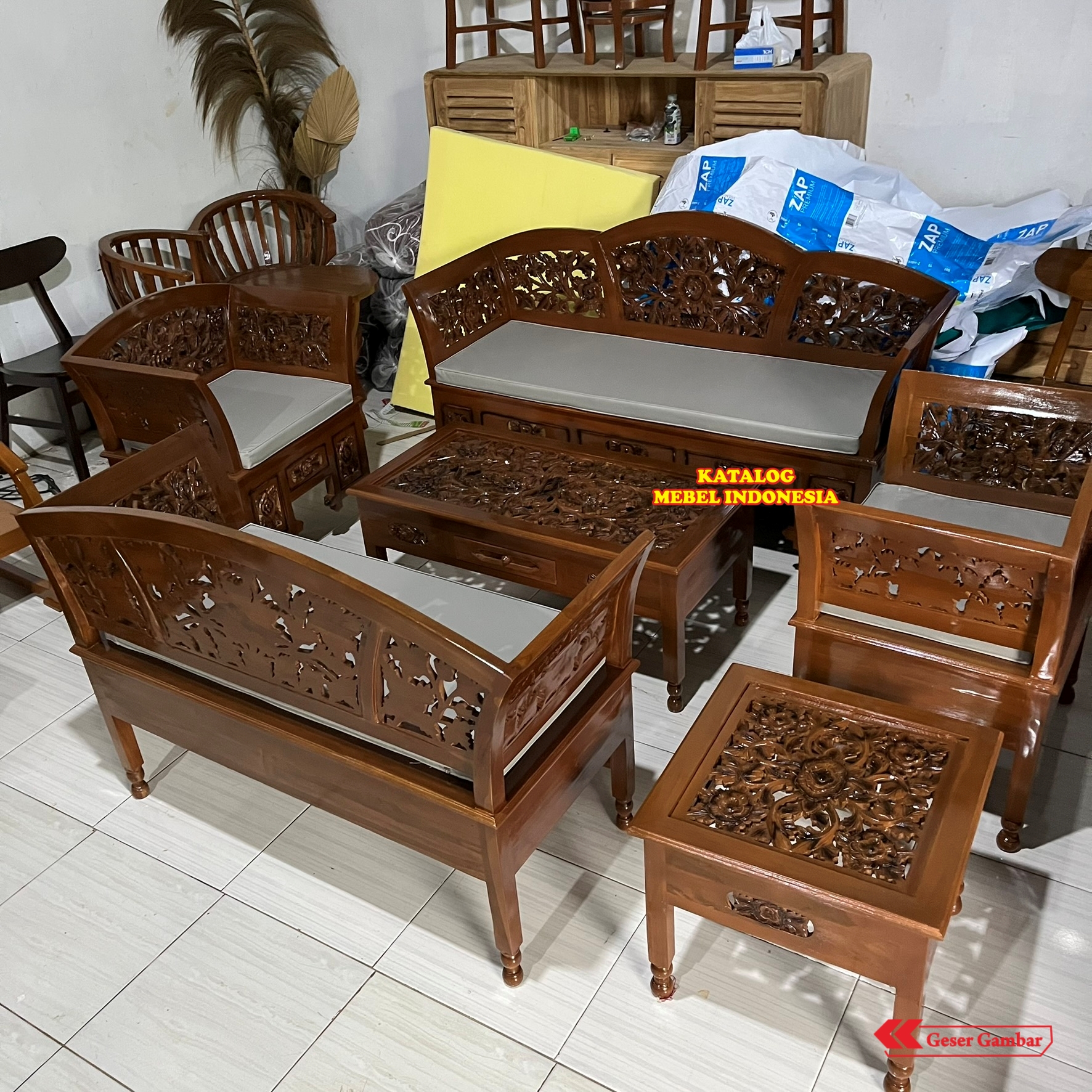 SET SOFA TAMU UKIR KARTINI JEPARA Kayu Jati 3-2-1-1 + 2 Meja - Kursi Tamu Mewah Ukir Klasik
