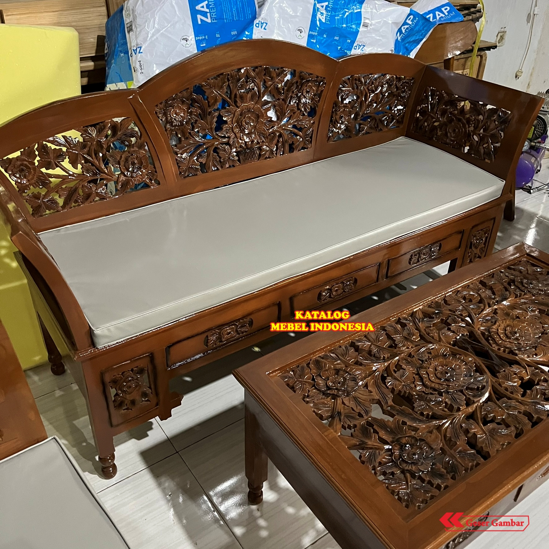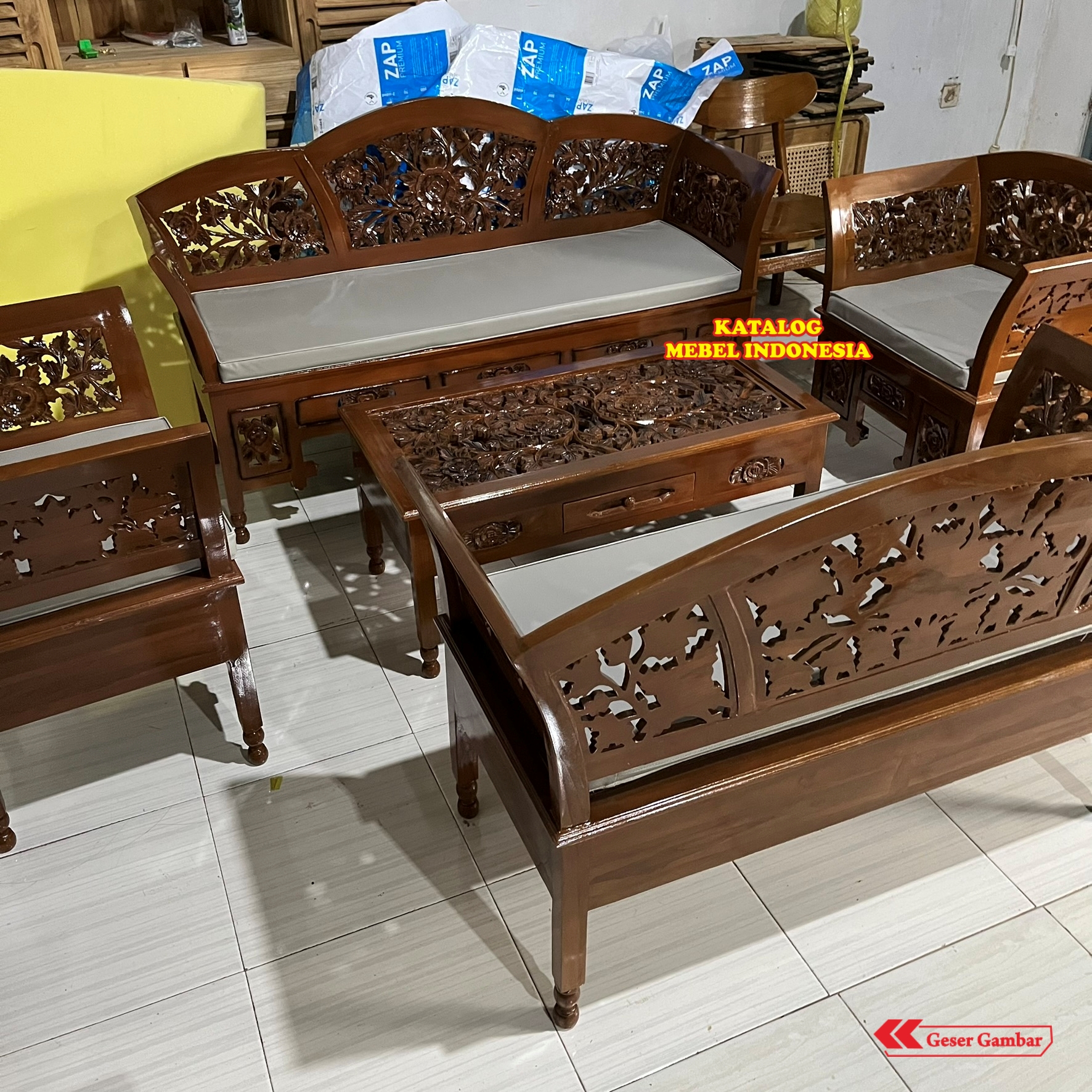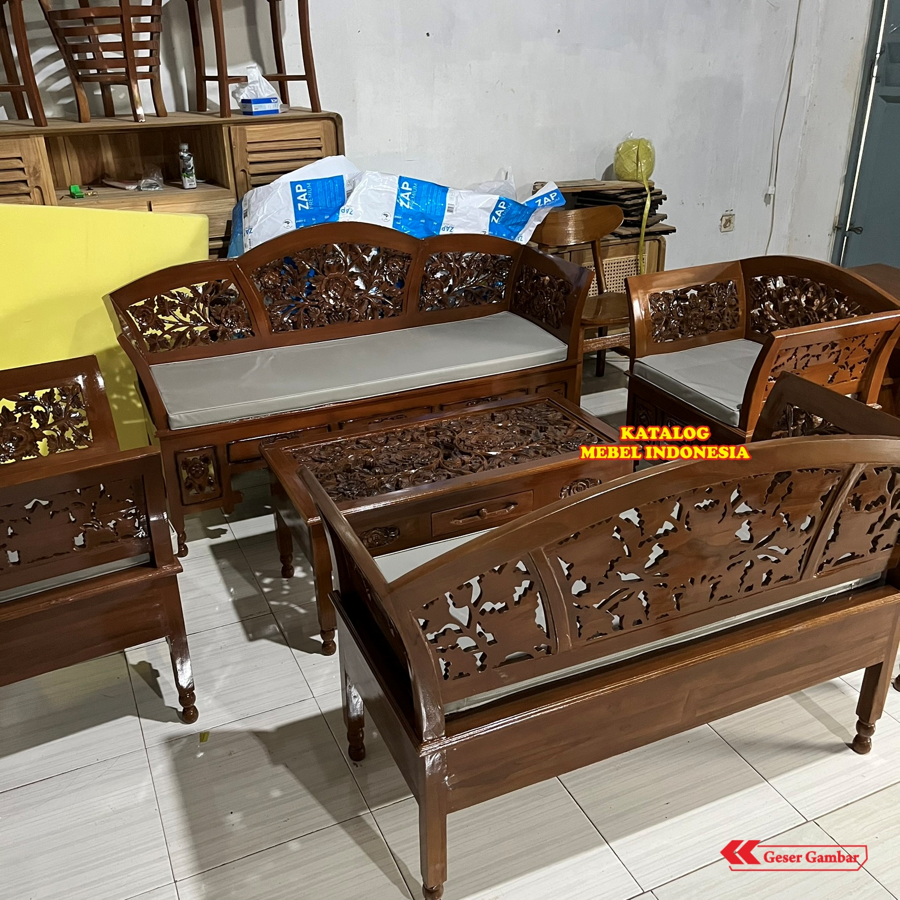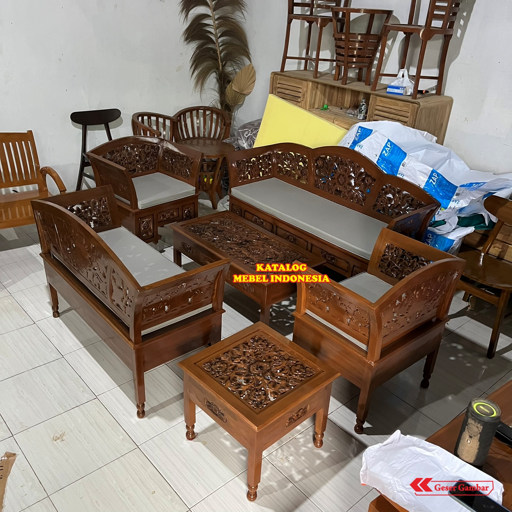 SET SOFA TAMU UKIR KARTINI JEPARA Kayu Jati 3-2-1-1 + 2 Meja - Kursi Tamu Mewah Ukir Klasik