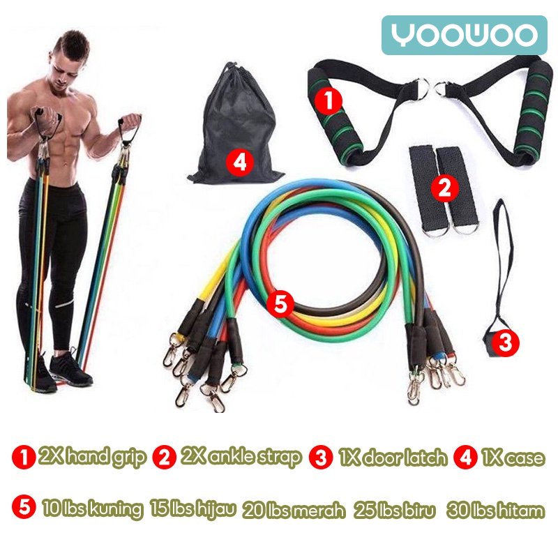 YooWoo Resistand band set 11pcs /11in1 Set tali fitness/Set tali gym/Band stretching