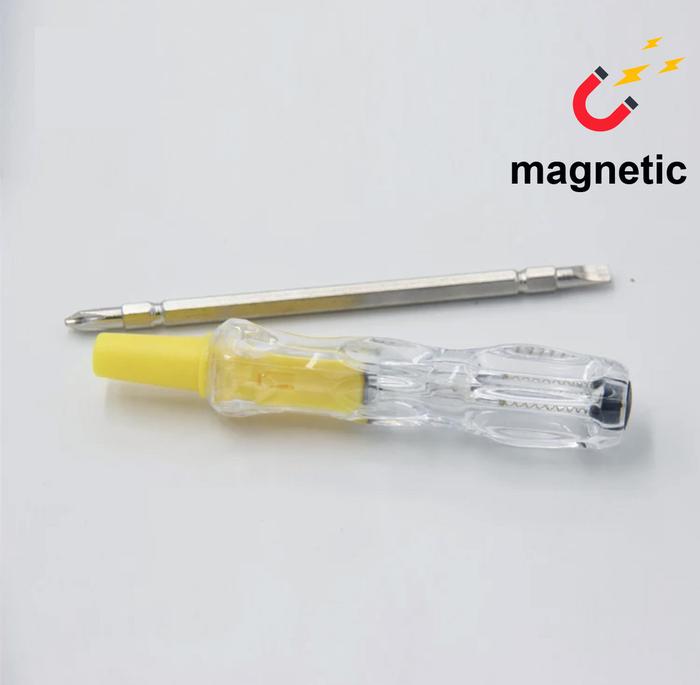 obeng tespen tes test pen plus min minus kembang 2 in 1 kuning bolak balik magnet small kecil