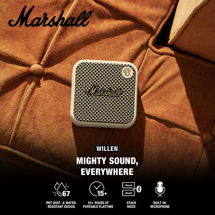 Marshall Willen Portable Bluetooth Speaker - Black & Brass and Cream Speker Bluetooth Super Bass Garansi 1 Tahun Spiker