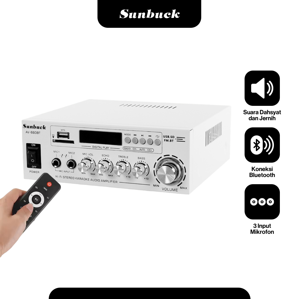 Sunbuck Audio Bluetooth 5.0 DAC Amplifier 2 Ch Remote 2000W - AV-660BT