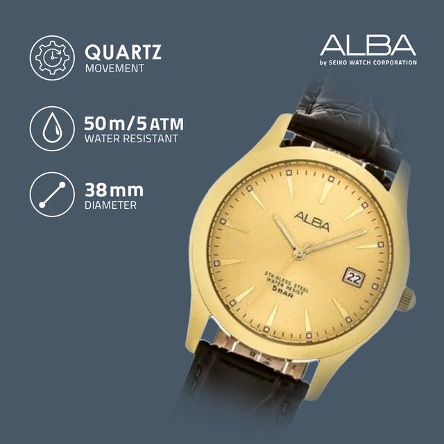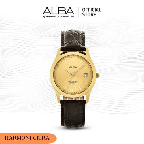 [Star] Jam Tangan Alba Original Jam Tangan Alba Wanita Jam Tangan Pria AXHL64X1 Quartz Gold Dial Black Genuine Leather