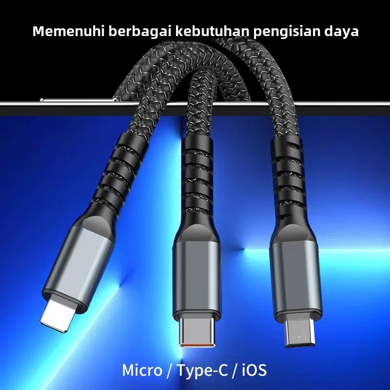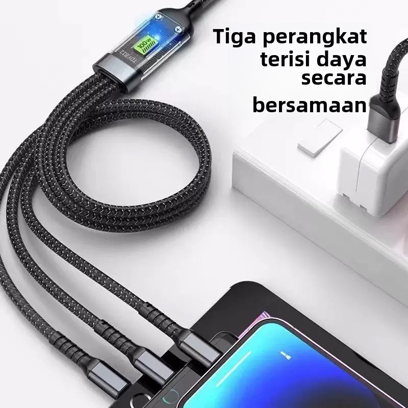 GUKOO 3IN1 Super Fast Charging 100W Kabel Data usb To Type C Lightning Micro with Digital Display