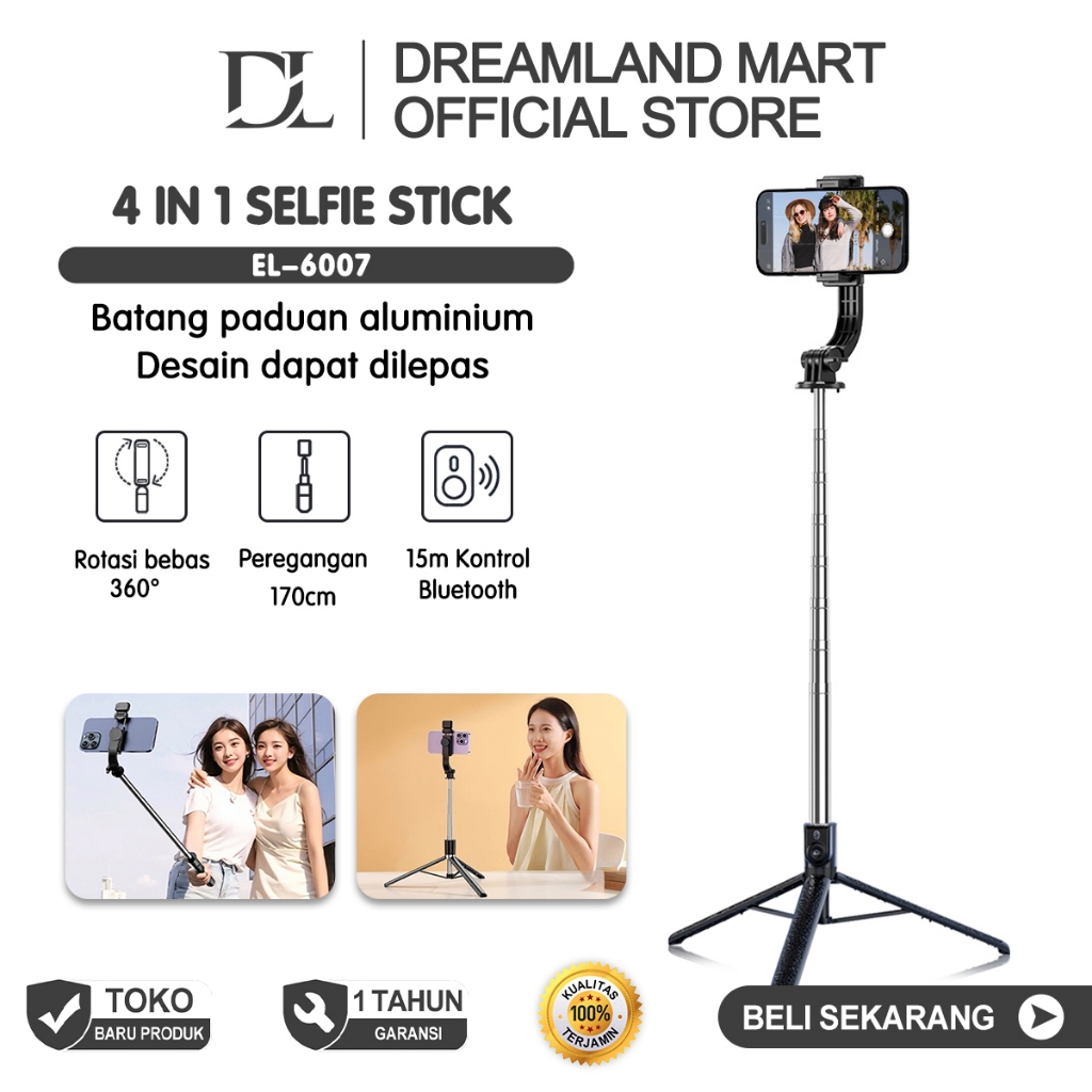 DL 4 in1 170cm Selfie Stick Tongsis Tripod Remote Tongsis Bluetooth LED Selfie Stick