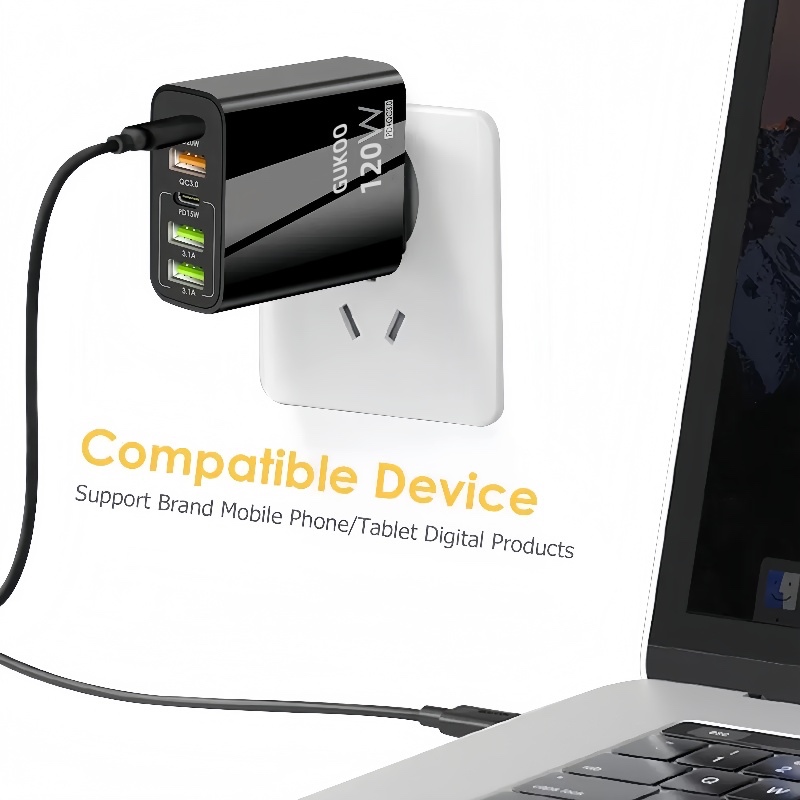 [Star]Gukoo Adaptor Fast Charging 120W Multi Port - USB & Type-C Dual Support - Cocok untuk HP/Laptop/Tablet